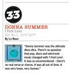 La rivista NME ha incluso I FEEL LOVE nella lista dei singoli numeri 1 pių importanti della storia.